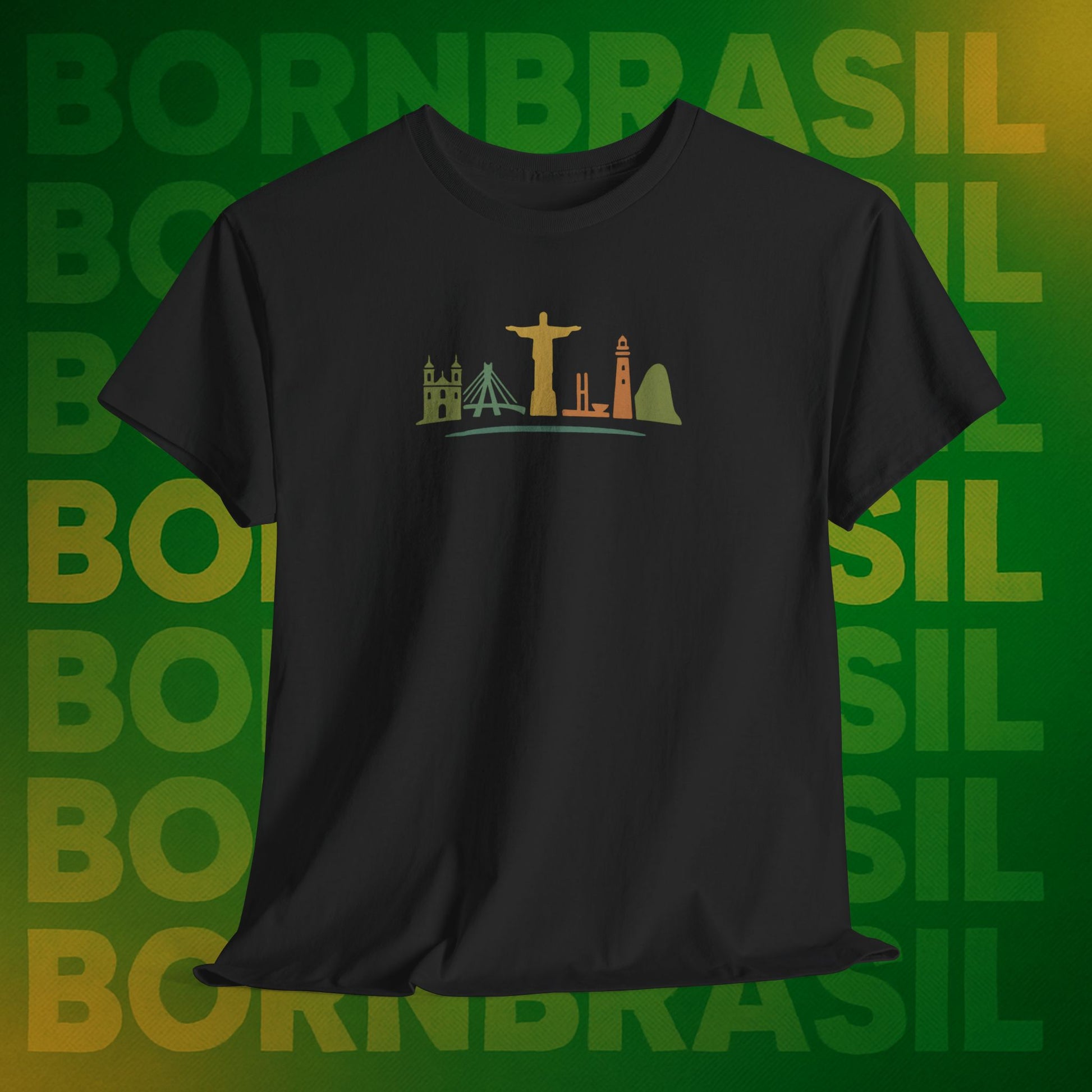 A camiseta Masculina Born Brasil Skyline Nacional – BornBrasil homenageia o Brasil através de seus maiores símbolos arquitetônicos e culturais, desenhados à mão em estilo minimalista. Cada traço transmite pertencimento, orgulho e brasilidade de forma moderna e sofisticada. Uma arte exclusiva da BornBrasil, perfeita para brasileiros no exterior que querem carregar o país no peito de forma elegante e autêntica. Moda brasileira com alma e identidade.