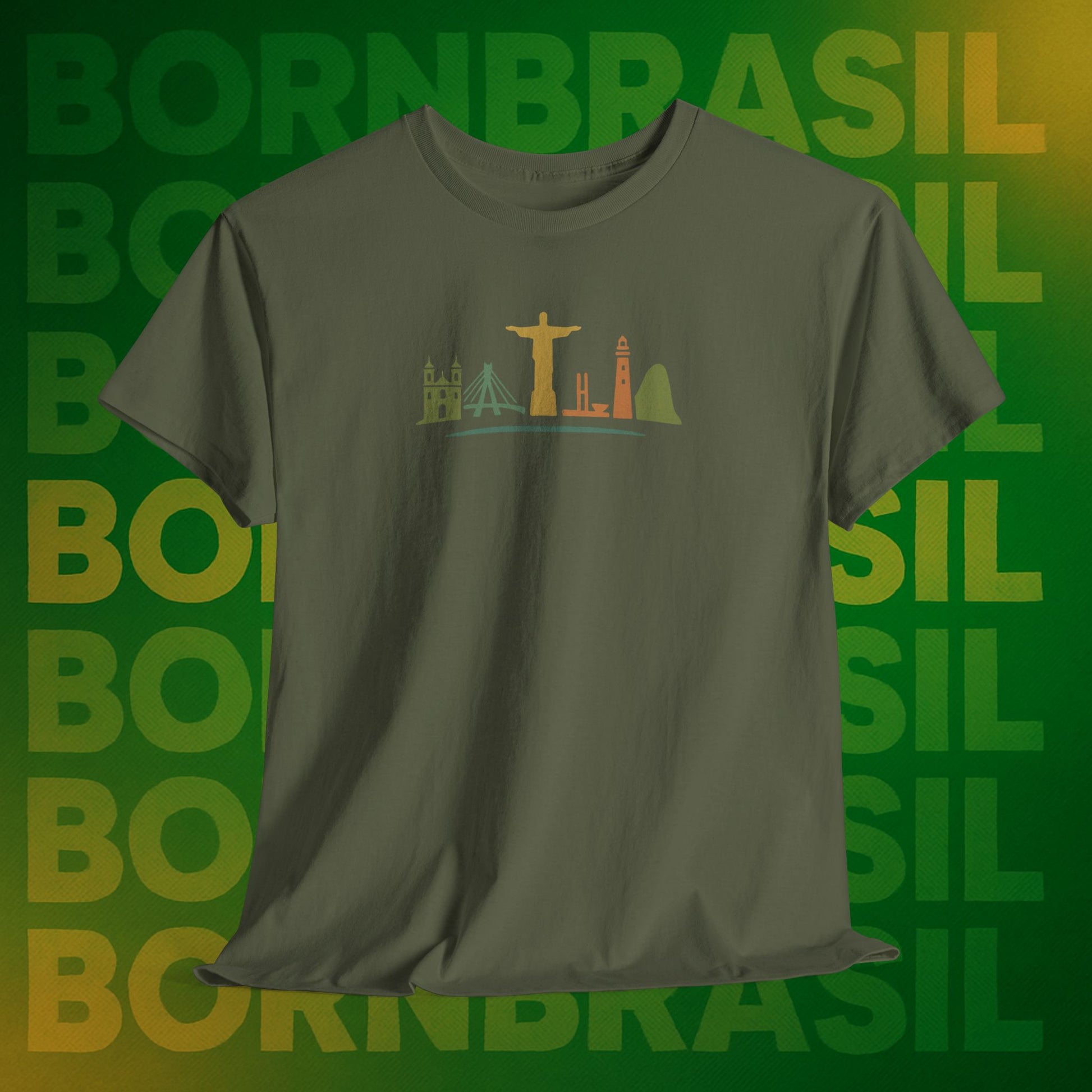camiseta brasileira, moda brasileira, estampa Brasil, skyline brasileiro, camiseta cultural, bornbrasil.