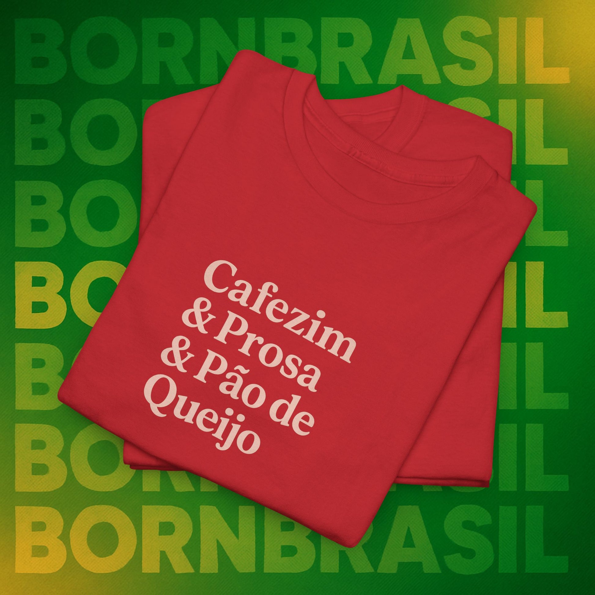 A Camiseta Feminina Cafezim & Prosa & Pão de Queijo – BornBrasil é puro aconchego mineiro em forma de moda.