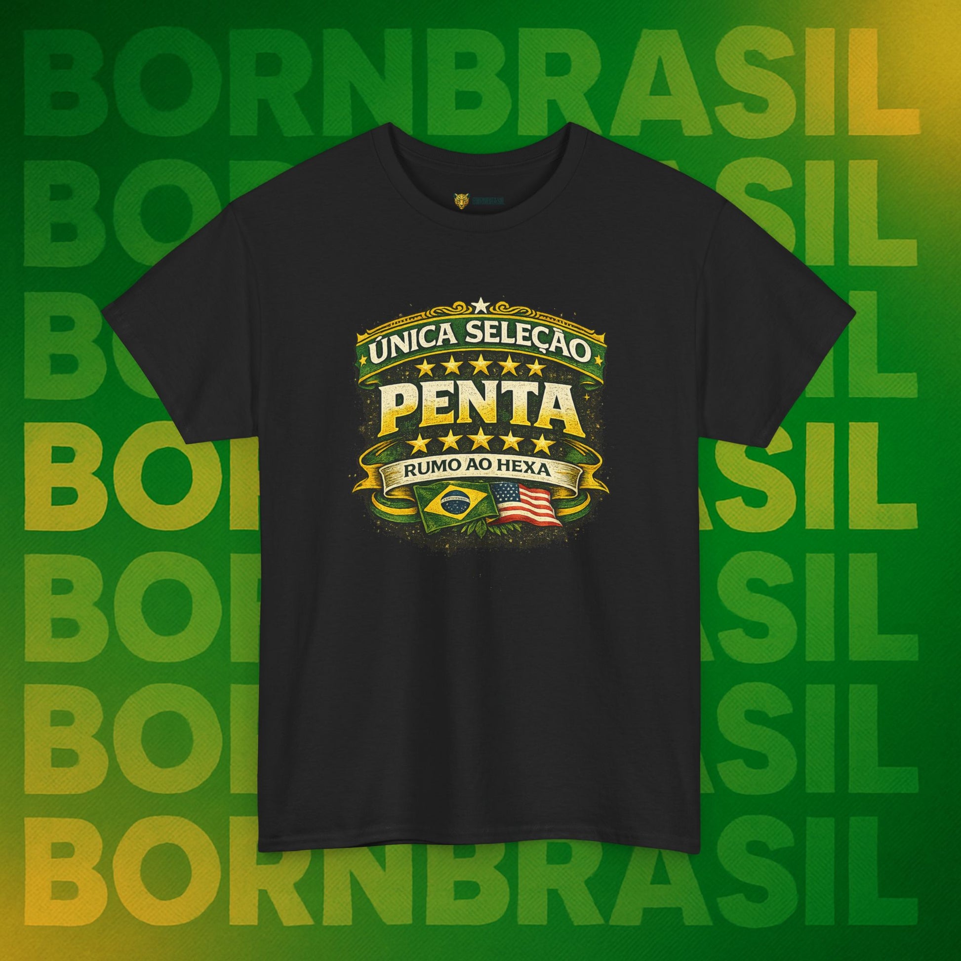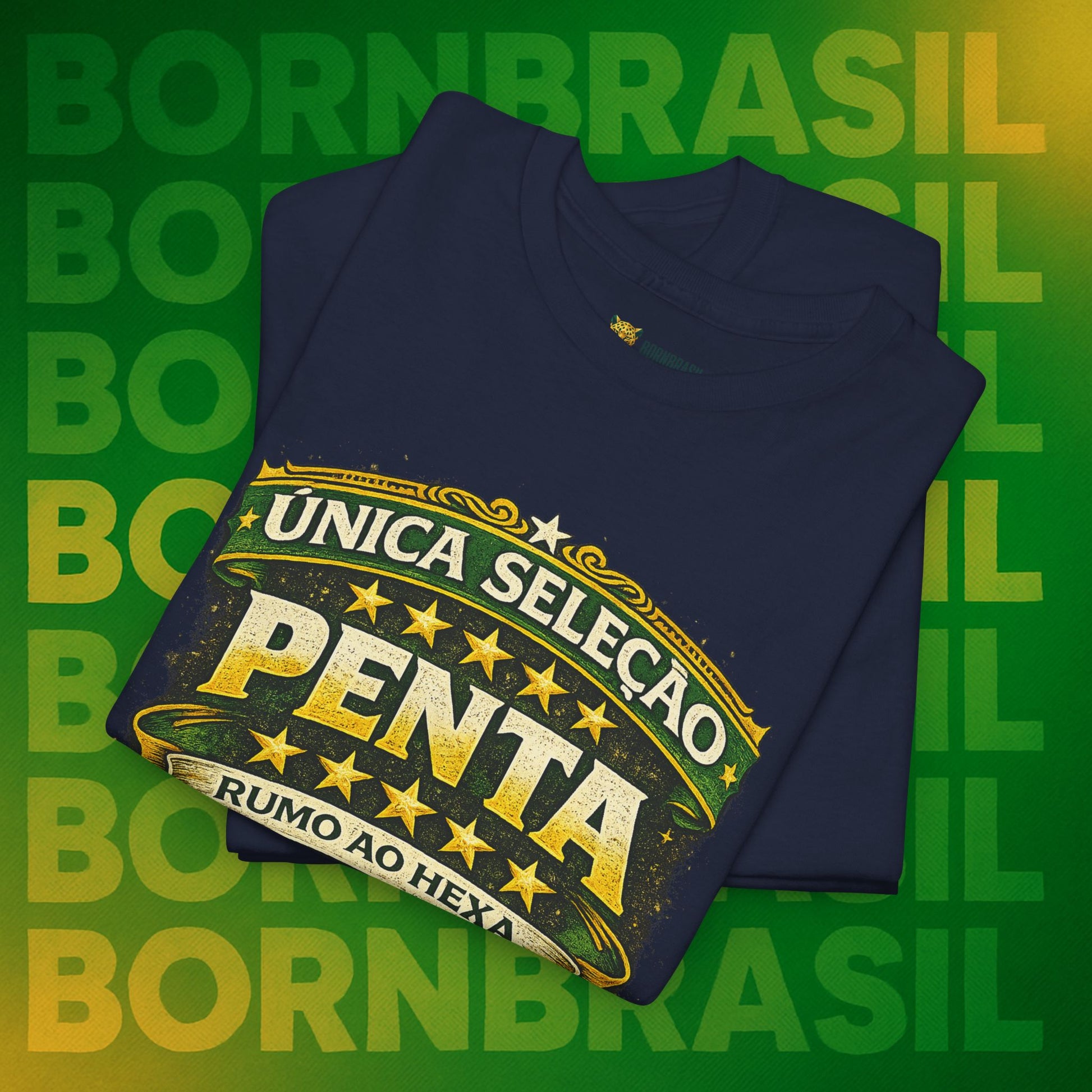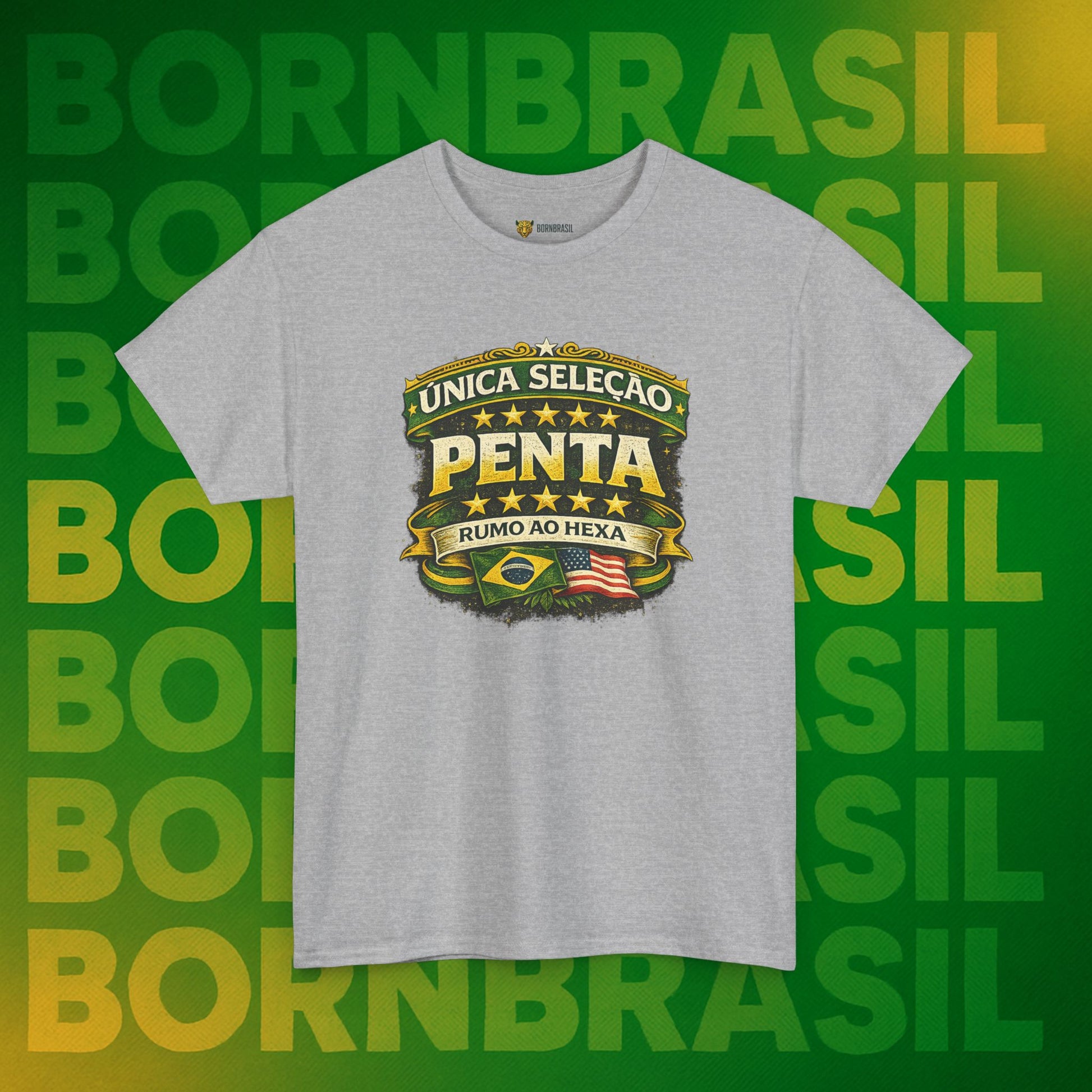 Pode mudar o endereço, o idioma e a rotina, mas a paixão pelas cinco estrelas é imutável. Esta camiseta da BornBrasil é para o brasileiro que sabe o valor da nossa história. Unindo o orgulho de ser a única seleção Pentacampeã com a garra de quem vive o "corre" no exterior, essa peça é o seu uniforme oficial de identidade.