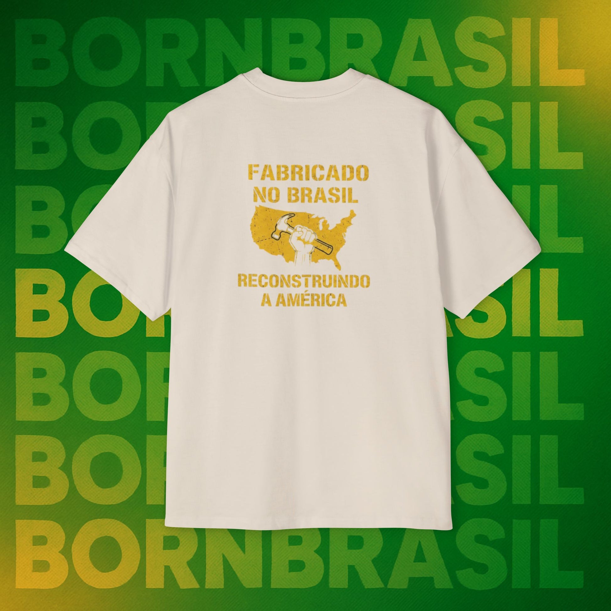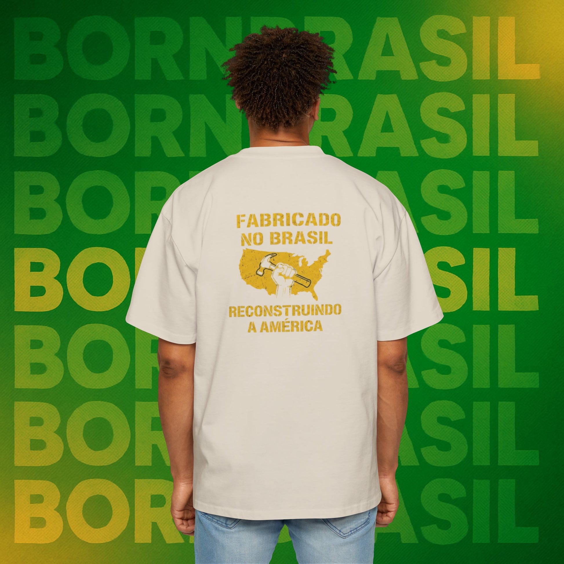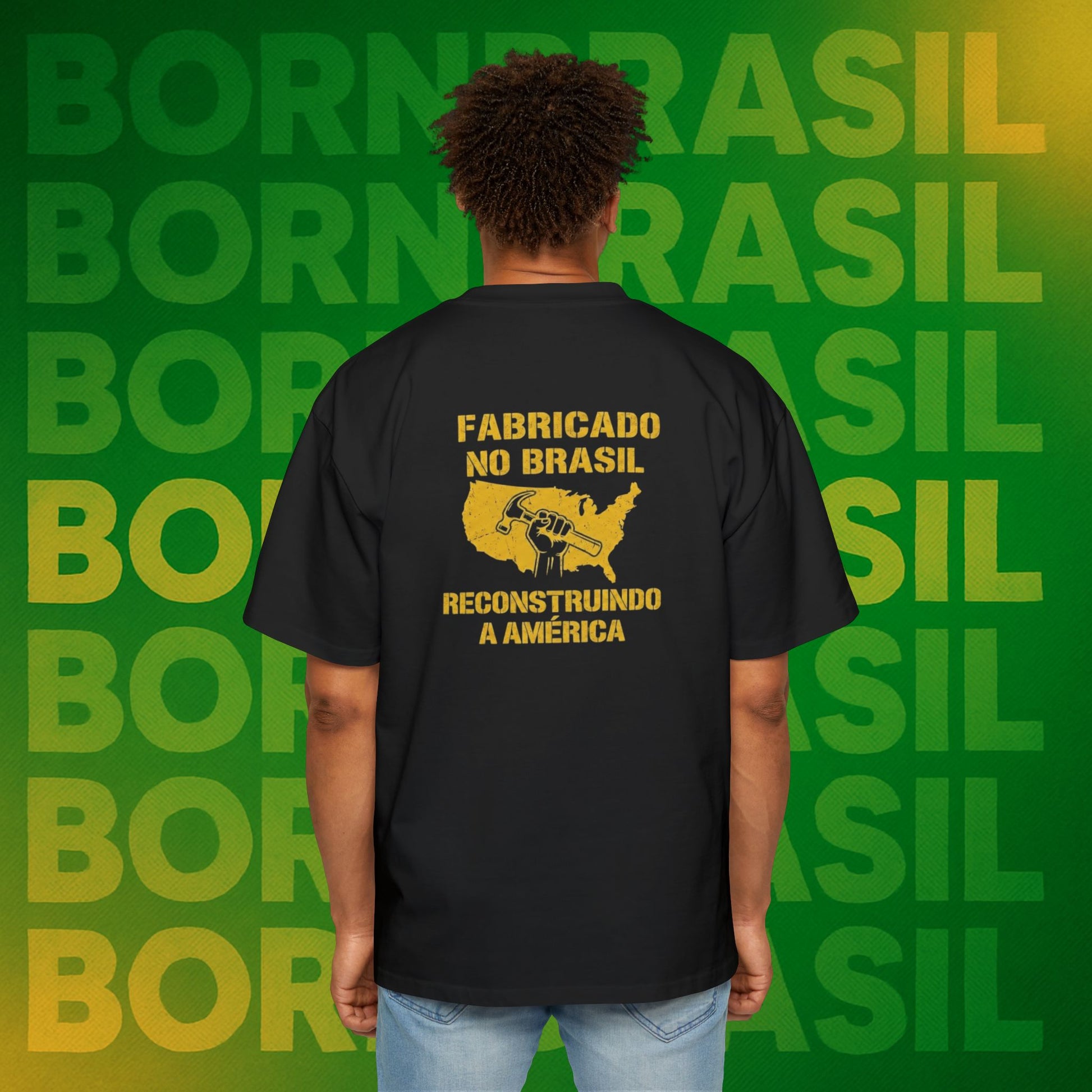 Camiseta Oversized Masculina “Fabricado no Brasil. Reconstruindo a América” – Orgulho Imigrante | BornBrasil