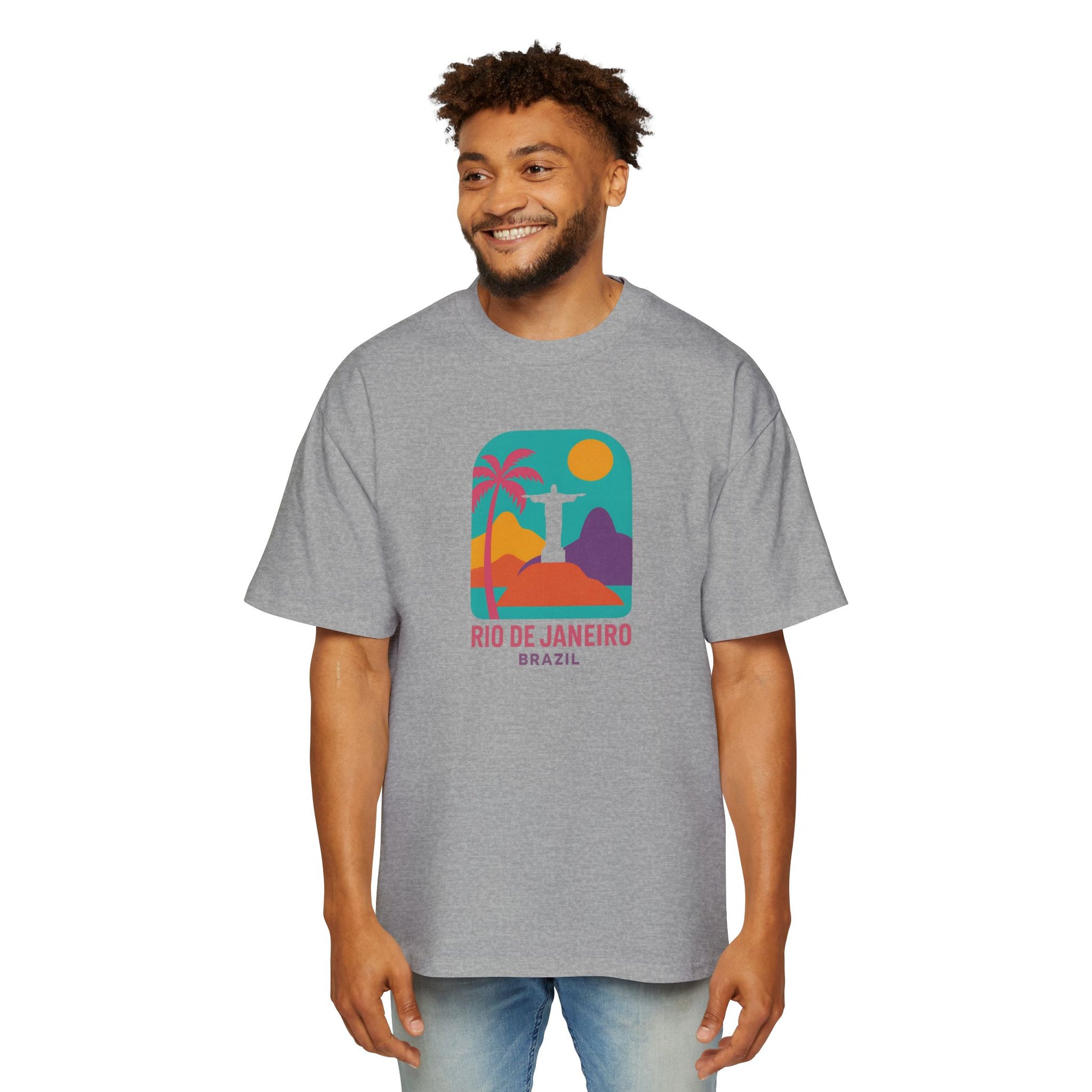 A Camiseta Retrô Rio de Janeiro Masculina Oversized da BornBrasil traz o charme dos cartazes turísticos dos anos 50 em uma versão moderna e estilizada. Com o Cristo Redentor centralizado, sol vibrante, palmeira tropical e morros icônicos, essa estampa traduz o orgulho carioca em um design vintage premium.